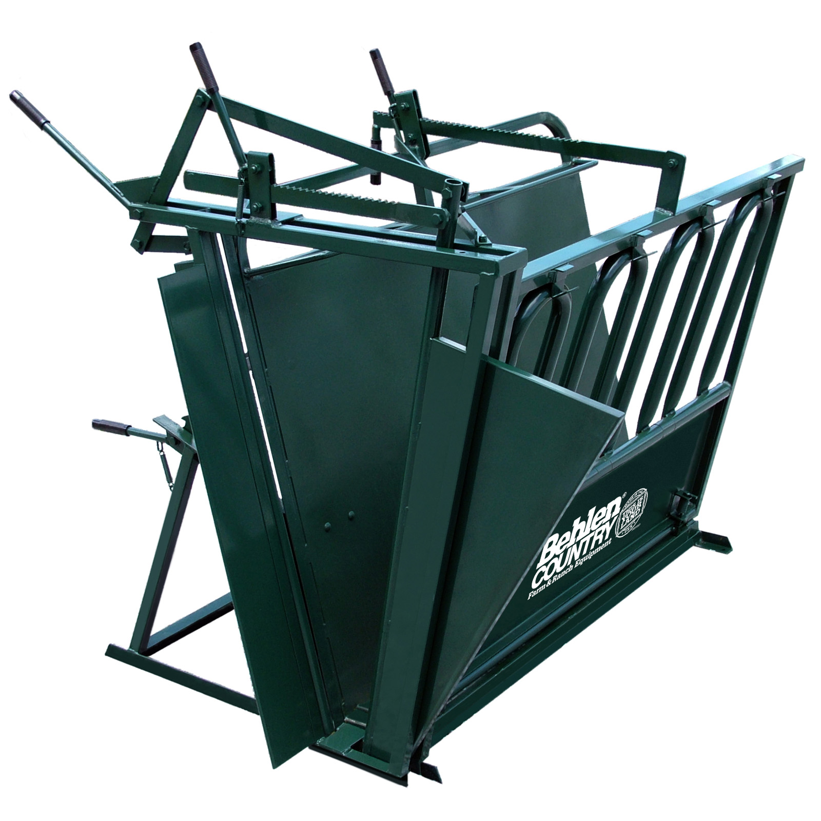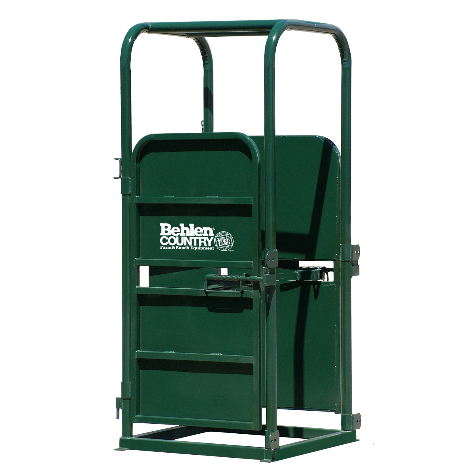The A.I. Cage provides a safe, convenient access area behind the chute. Sheeted double doors self lock to block the alley and keep you safe. Attaches to any Behlen Country squeeze chute and allows quick access to the opposite working area.