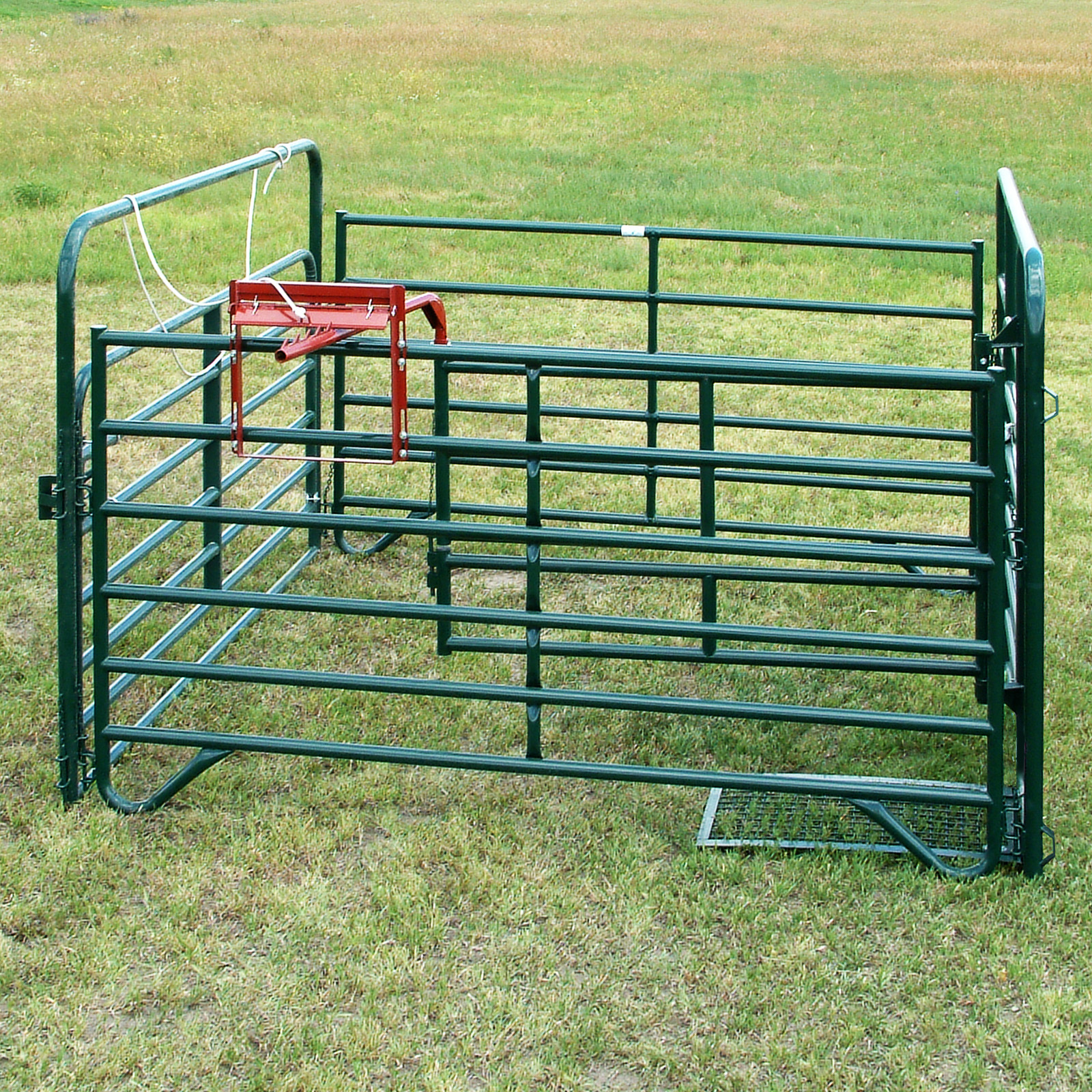 Provides a portable and self-contained working area to assist with calving and calf acceptance (nursing) problems. The Care Center is an ideal cattle work area for small herds. One-man operation and complete portability make it an essential part of any cattle operation. Accepts any of the Behlen Country Headgates and the squeeze gate is split to allow it to swing out of the way to correct nursing problems or to convert the pen into an area for treating and containing sick animals.