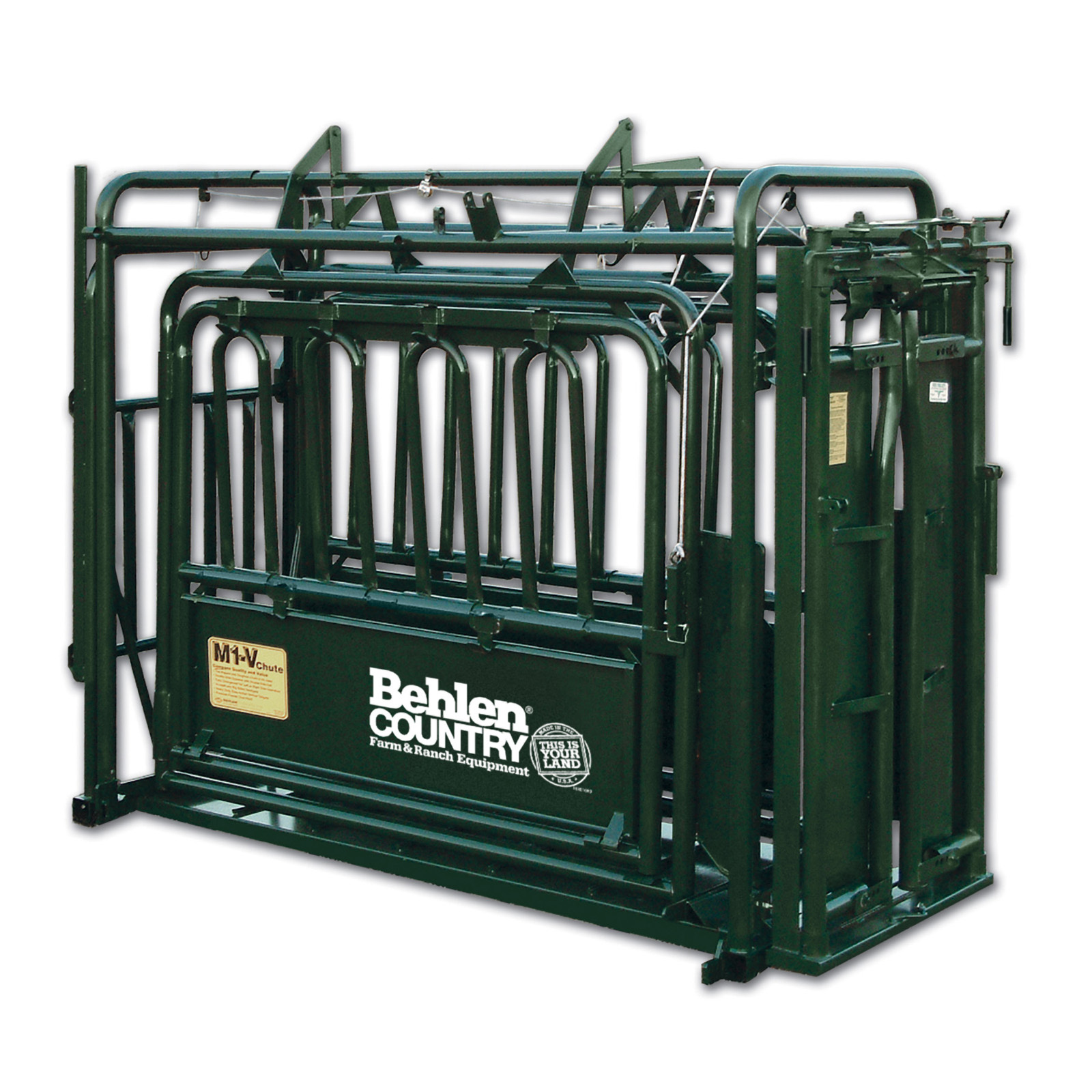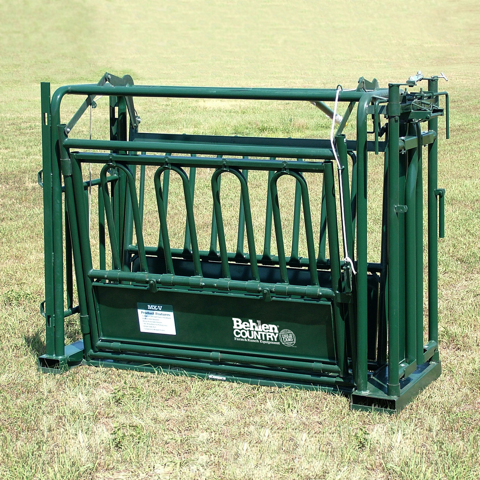 Heavy-duty, spring-cushioned, self-catching auto headgate with auto reset with an easy-to-use, single-handle mechanism opens and closes, split tail-gate with little effort.
